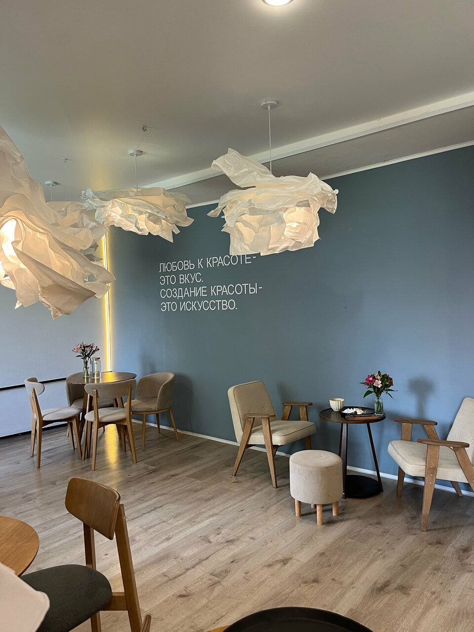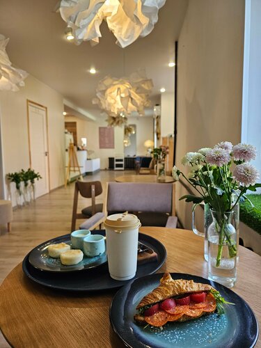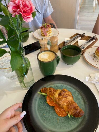 Хорошее кафе. Работают милые девушки. Вкусные десерты, собственного изготовления, легкие закуски, кофе тоже хороший. Очень нравится обстановка, цветы на столиках живые, это красиво.
